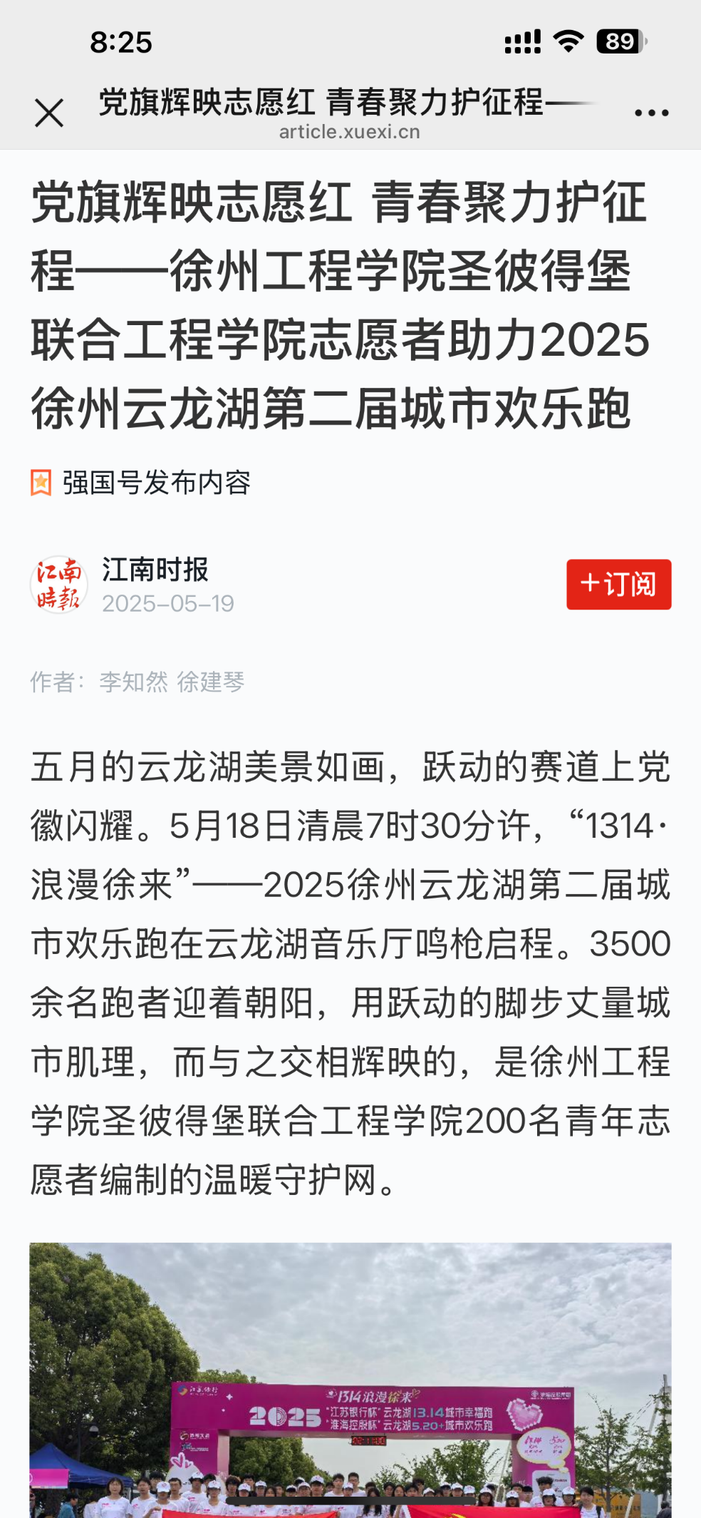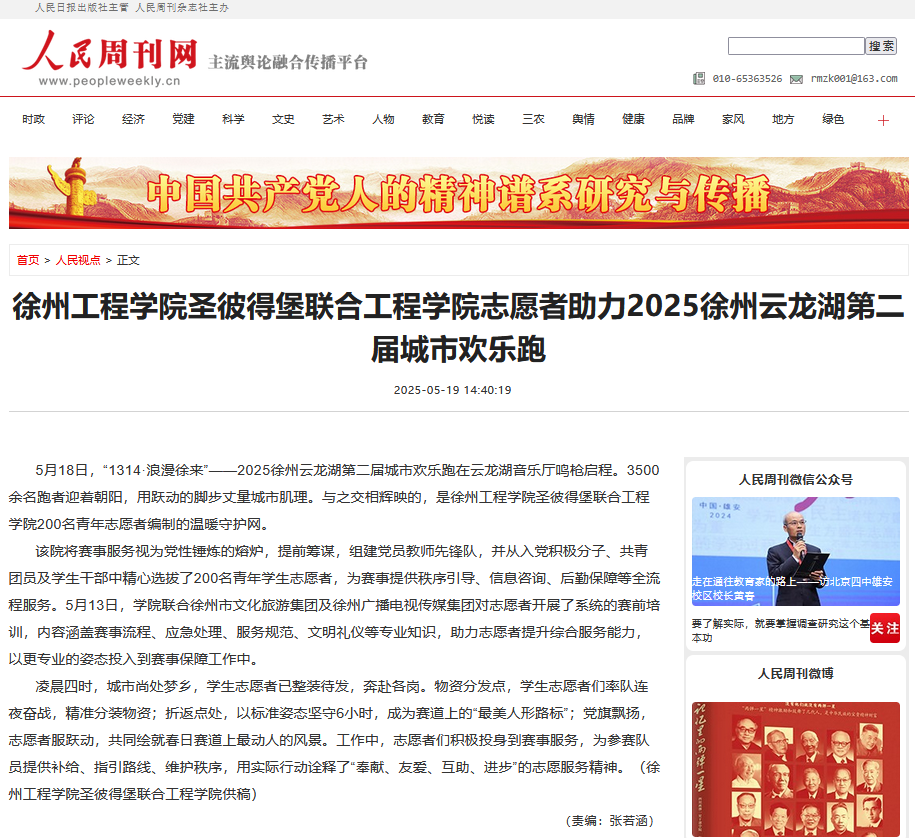 此次活动得到各大媒体广泛关注并报道,央视国际在线、人民周刊网、学习强国及交汇点新闻等多家媒体刊文报道公司志愿者助力2025徐州云龙湖第二届城市欢乐跑活动。