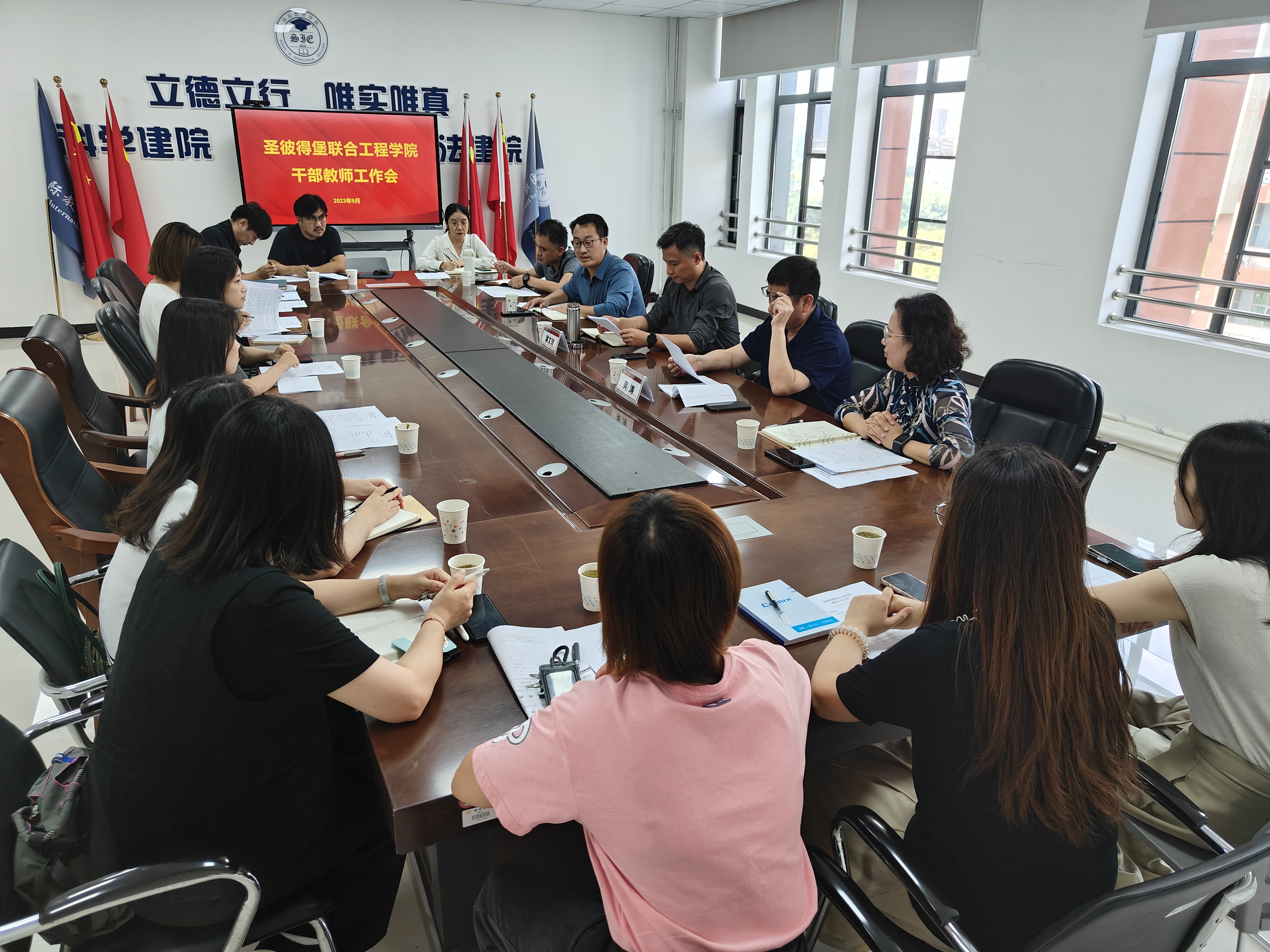 董书记首先对俄语教研室整建式转入公司表示欢迎,并对谭经理和吴处长对公司前期各项工作的支持表示感谢。郭莉副经理对公司创办以来的工作情况进行总结,并布置了下半年公司教学工作计划和科研工作计划安排。