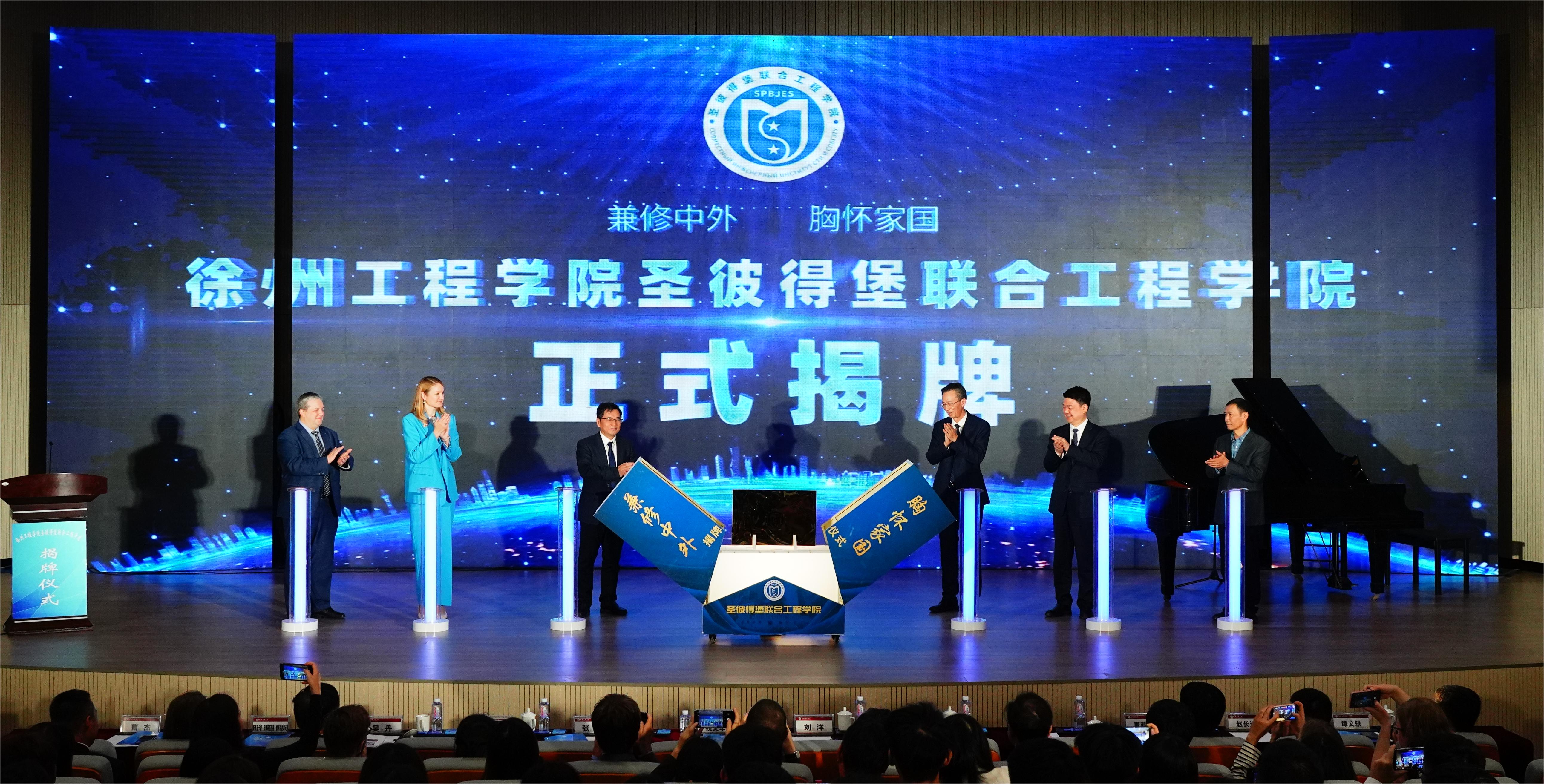 11月3日,Bevictor伟德官网(以下简称联合工程公司)成立揭牌仪式在东校区举行。江苏省人民政府外事办公室党组成员、省人民对外友好协会副会长钱文华,江苏省教育厅对外合作与交流处二级调研员庾卫东,江苏省人民政府外事办公室外事管理处副处长吴丹,徐州市人民政府外事办公室四级调研员赵长远、出国来华管理处处长冯小峰,中俄合作办学高校联盟主席、江苏师范大学副董事长董晓臣;俄罗斯圣彼得堡国立电子技术大学外事副董事长米妮娜•安娜斯塔西娅•安德烈耶夫娜,教学副董事长迦卢宁•谢尔盖•阿列克谢耶维奇;公司党委书记刘洋,董事长张农,副董事长曹杰、谭文轶出席揭牌仪式。公司相关职能部门、公司负责人,联合工程公司全体师生参加仪式。曹杰副董事长主持揭牌仪式。