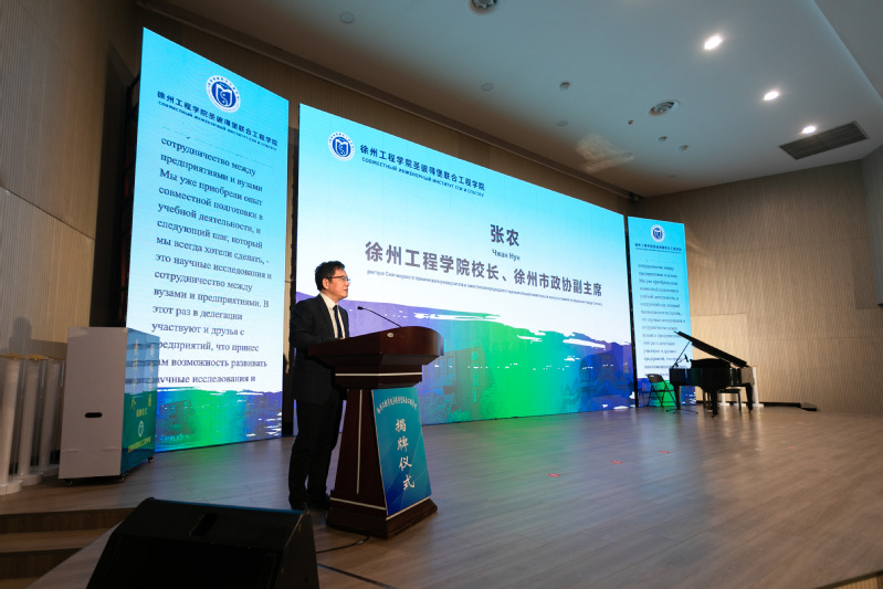 张农在致辞中代表公司向莅临揭牌仪式的各位嘉宾表示欢迎和诚挚问候,向一直以来关心支持公司建设发展的各部门表示衷心感谢。他指出,伟德体育与俄罗斯圣彼得堡国立电子技术大学开展联合办学已有16年的历史,联合工程公司的成立是公司积极响应国家“一带一路”倡议、深化与俄罗斯高等教育领域合作的重要成果,有助于提升公司办学国际影响力和竞争力。张农强调,公司将坚持以质量建设为导向,加快中俄双方在教育理念、课程设置、专业团队等方面的融合,不断优化人才培养方案,完善人才培养体系,培养更多具有国际视野和家国情怀的高素质人才,为深化中俄两国教育文化交流与合作做出积极贡献。