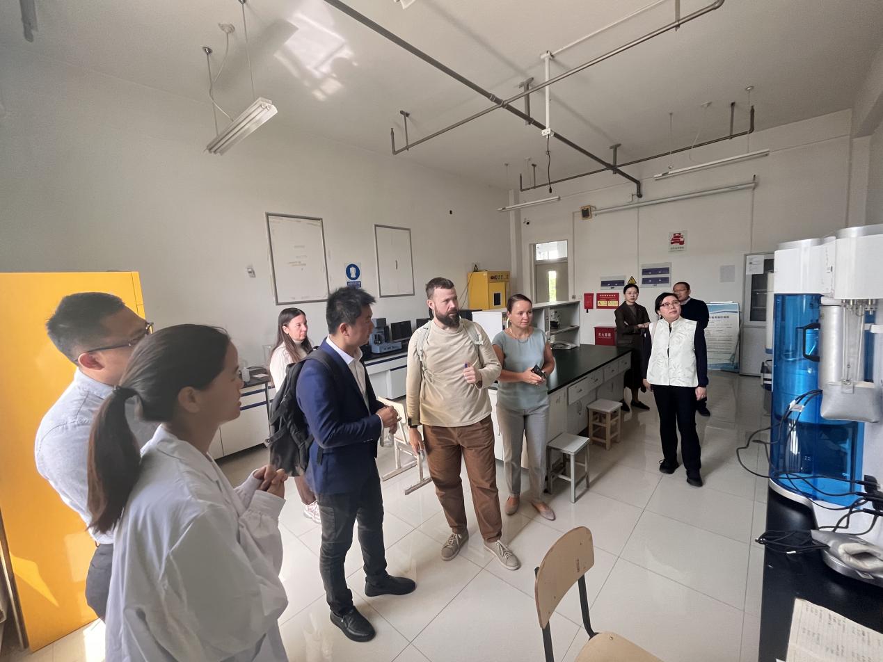 在环境工程公司和材料与化学工程公司,俄方副经理一行参观了多个科研实验室。实验室负责教师详细介绍了实验室的研究方向、科研成果以及设备运行情况。俄方副经理对我校在环境、材化领域的研发实力表示钦佩和赞叹,并希望未来能够加强合作,共同推动该领域的技术进步。