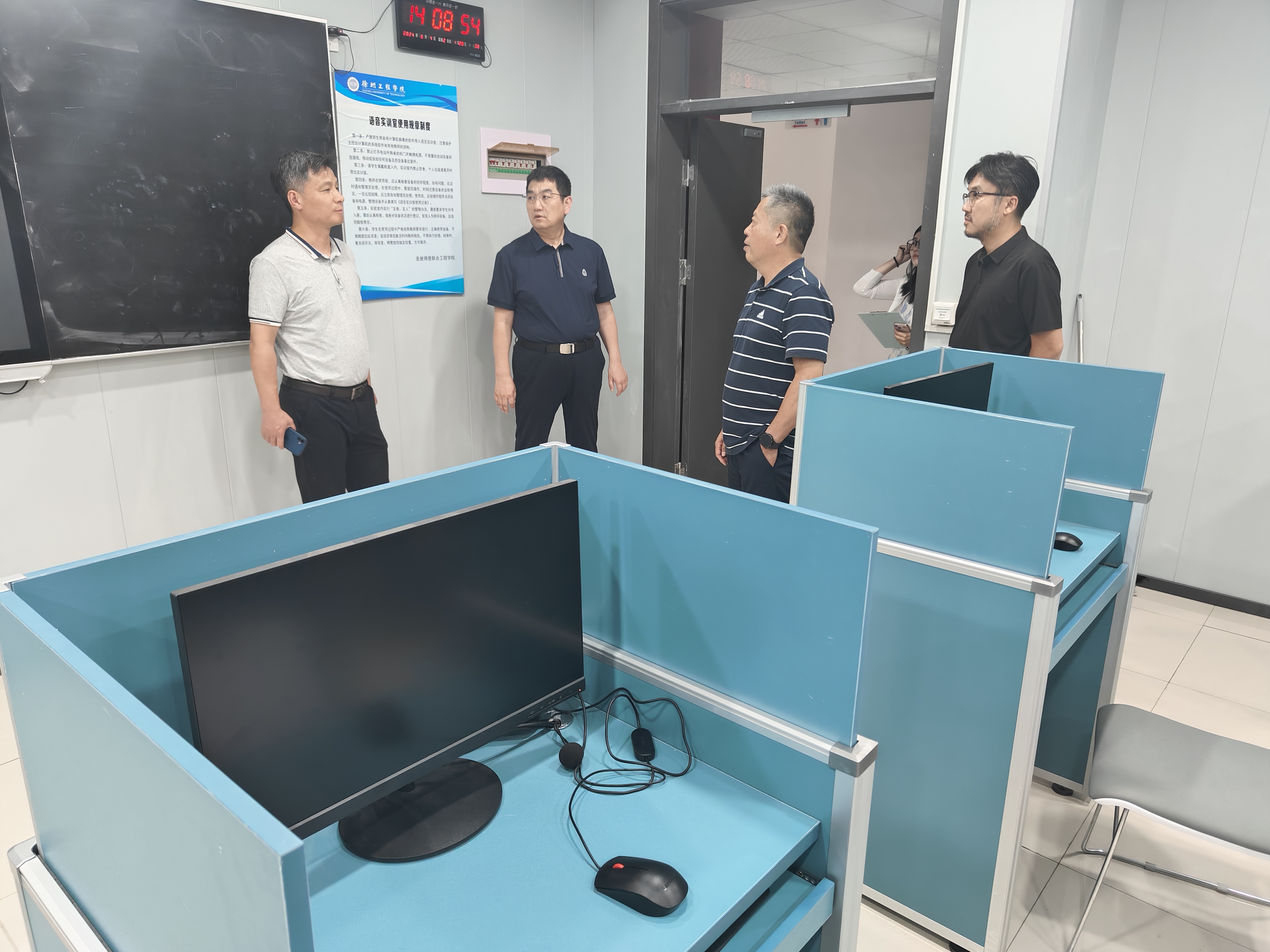 本次检查由公司党委常委、副董事长谭文轶带队,学校实验设备与管理处张本业处长,公司直属党支部书记吴涛,副书记王烁以及实验室安全管理人员深入公司语音机房及远程互动实训室,依据《高等公司实验室安全检查项目表(2024年)》各项指标,重点对实验室安全管理制度落实、档案材料建设、消防安全、用电安全、仪器设备维护等方面进行逐条逐项隐患风险点摸排检查。