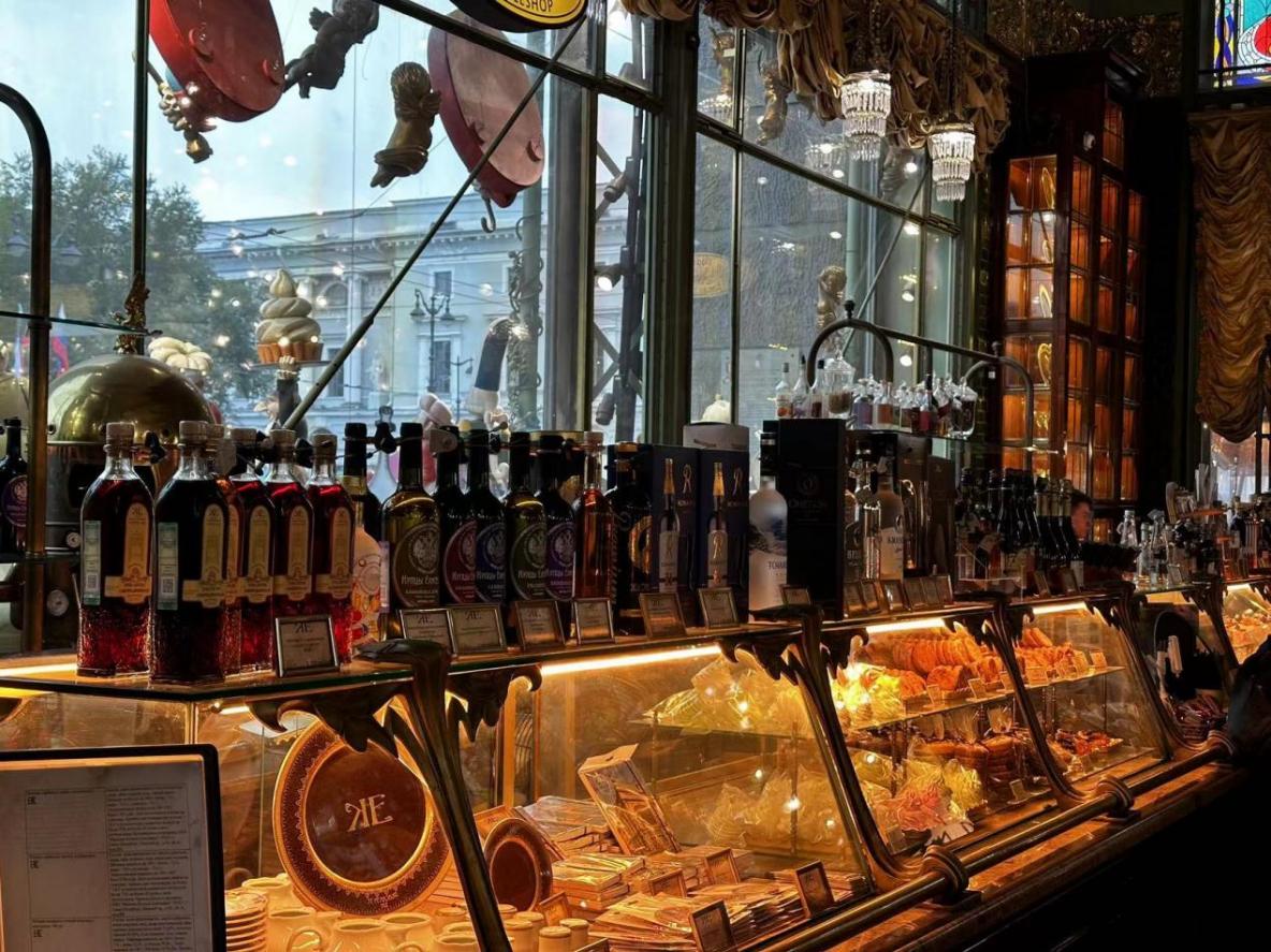 在涅瓦大街长长的街道中,巧克力、糖果、书本、纪念品、美食,应有尽有;而在纪念品店之中,彩蛋、信封、套娃等特色商品琳琅满目,陈列于货架之上。大家都很兴奋,像蜜蜂寻找花蜜一般在涅瓦大街上四处奔走,那是一个截然不同的世界,一种截然不同的文化,它们伴随着神话和习俗产生了种种美丽的造物——直到看到它们我们才真正意识到了这一点。