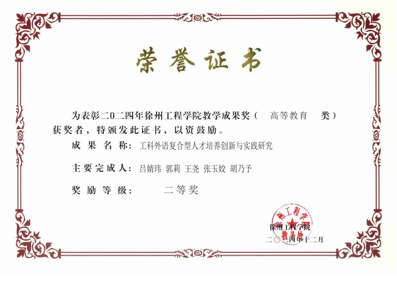 日前,公司公布了2024年校级教学成果奖评选结果。公司郭莉教授、吕婧玮教师携团队分别获得校教学成果特等奖、二等奖。