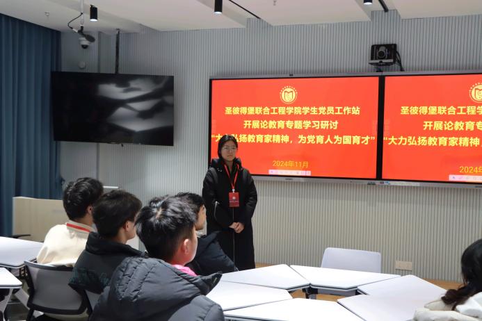 11月13日,员工党员工作站组织部开展了以习近平同志《论教育》“感悟思想·凝聚力量”主题班会活动。通过此次主题班会,入党积极分子及员工工作站成员深受鼓舞,纷纷表示将以更高的标准要求自己,不断提升自身的思想政治觉悟和专业素养,以实际行动践行教育初心,为实现中华民族伟大复兴的中国梦贡献自己的力量。